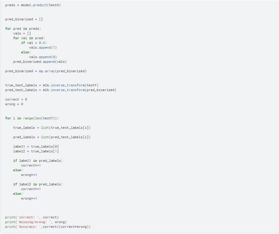 For this reason, after performing some filtering operations on the two labels, we recalculated the success of the model without making any new predictions. As a result of this calculation, the success of our model increased noticeably.
